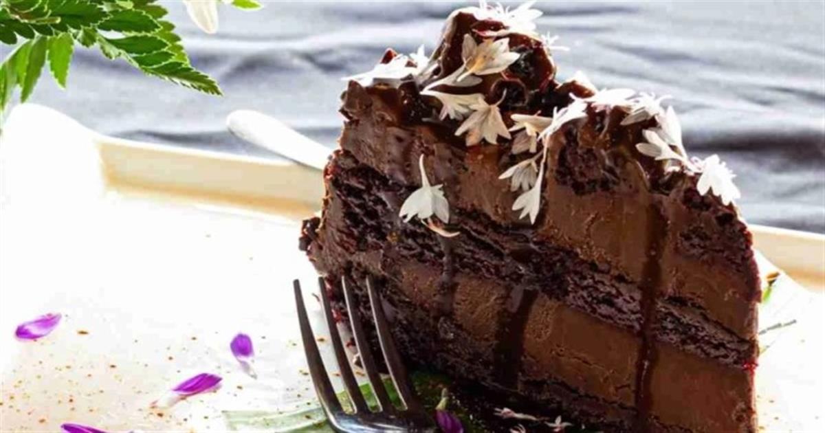 - Κόβουμε σε κομμάτια τούρτας και σερβίρουμε με λίγη χτυπημένη κρέμα, φρούτα δάσους και πασπαλίζουμε με άχνη και κακάο.
