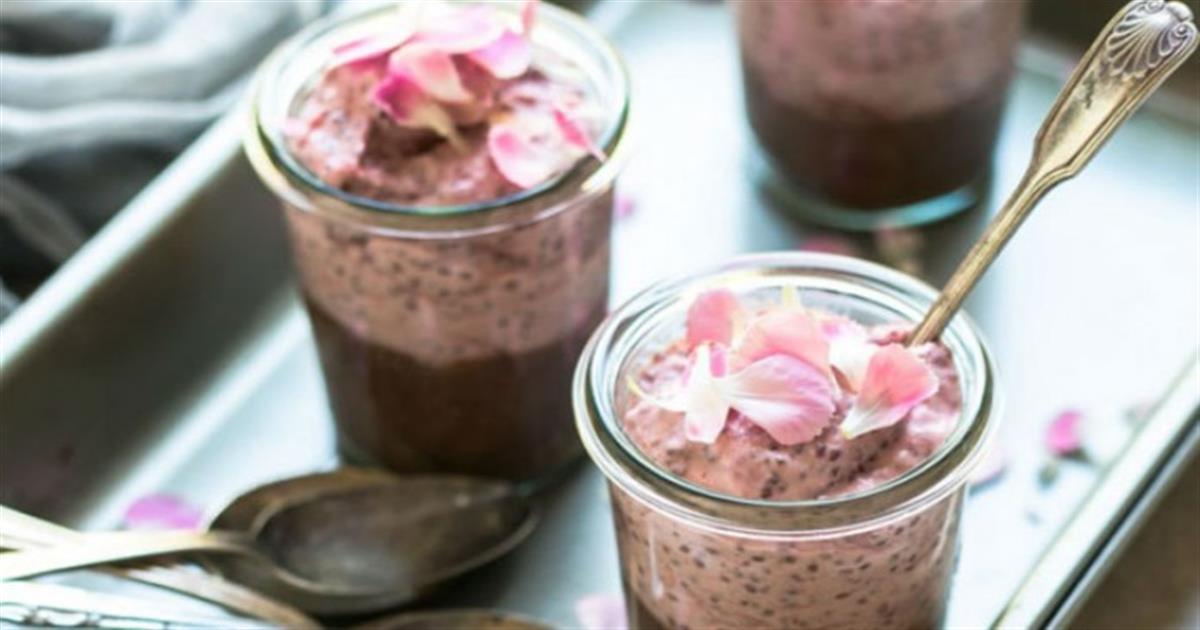 2. Για να φτιάξετε τη στρώση σοκολάτας, τοποθετήστε σε ένα μπολ 1 φλιτζάνι κρέμα καρύδας, 2 κουταλιές της σούπας κακάο, 2 κουταλιές στρογγυλό σιρόπι και 1/2 κουταλάκι του γλυκού εκχύλισμα βανίλιας. Ανακατέψτε μαζί μέχρι να γίνουν ένα. Ανακατέψτε σε 3 κουταλιές σπόρους chia και συνδυάστε όλα τα συστατικά. Ρίξτε στη βάση των βάζων που θα χρησιμοποιήσετε. Τοποθετήστε το στο ψυγείο για 3 ώρες.