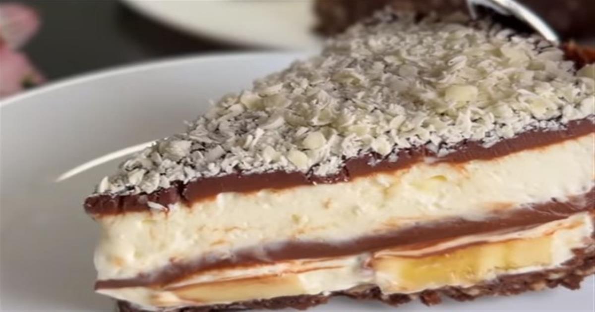 Μπανανένιο γλυκό ψυγείου με τυρί κρέμα, φυστίκια και μπισκότα έτοιμο σε 5′