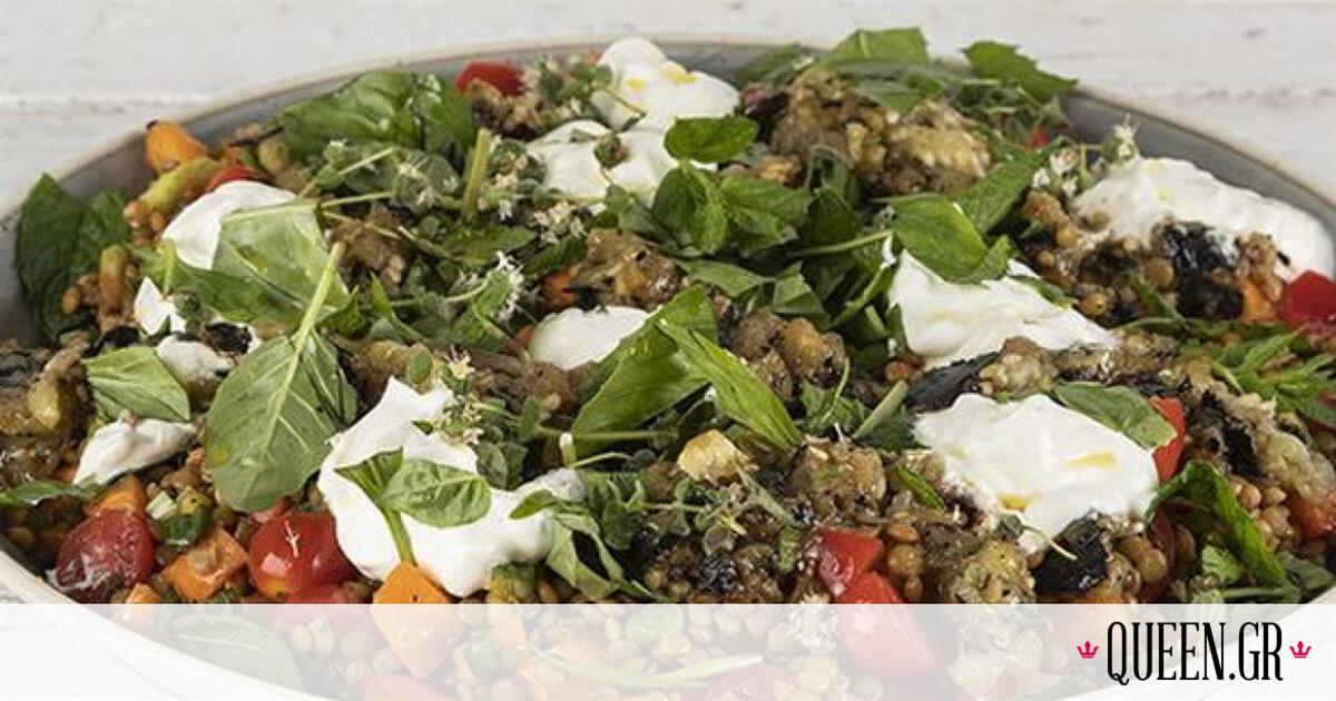 Θες διαφορετικό για σήμερα; Σαλάτα με φακές, μελιτζάνα και γιαούρτι