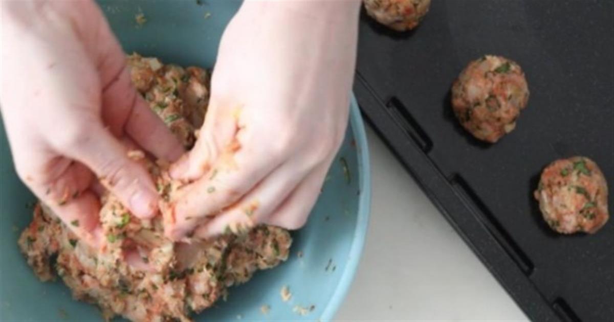 - Ετοιμάστε το μίγμα και πλάστε τα κεφτεδάκια σύμφωνα με την αγαπημένη σας συνταγή. Στο βίντεο προτείνει να χρησιμοποιήσετε τα χέρια σας στο ανακάτεμα.