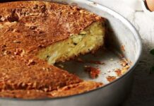 Βγάζουμε από το φούρνο και αφήνουμε να κρυώσει η πίτα, για 20 λεπτά και σερβίρουμε.