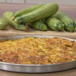 Μεταφέρουμε το μίγμα σ’ ένα βαθύ πυρίμαχο μπολ και καλύπτουμε με τη φρυγανιά. Στη συνέχεια, ρίχνουμε από πάνω την τριμμένη παρμεζάνα. Βάζουμε το μπολ στο φούρνο και ψήνουμε στους 180 °C για 25 λεπτά, μέχρι η φρυγανιά να ροδίσει και το τυρί να λιώσει.