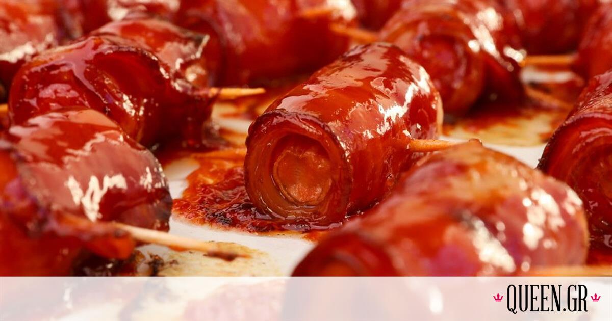 Λαχταριστά λουκανικάκια τυλιχτά με μπέικον