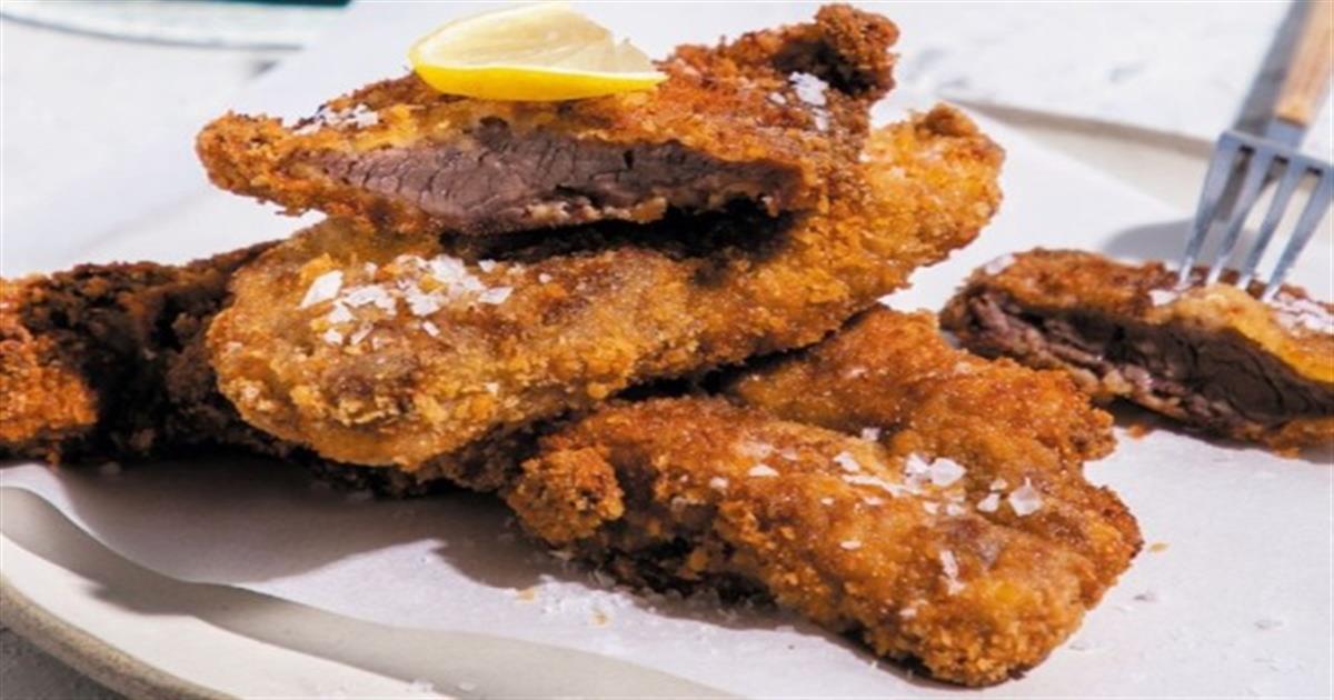 - Περνάμε μία μία τις μπριζόλες πρώτα από το αλεύρι, μετά από τα αυγά και τελευταία από το ψωμί, πιέζοντάς τες ώστε να καλυφθούν καλά.