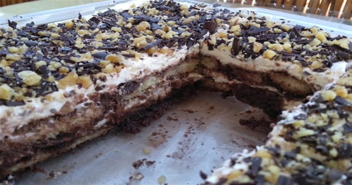 Μια υπέροχη, απλή, ανάλαφρη και πανεύκολη συνταγή για γλυκό ψυγείου με μπισκότα σαβαγιάρ, κρέμα σοκολάτας κουβερτούρας, σαντιγί, γαρνιρισμένη με τρίμμα και φλύδα σοκολάτας.