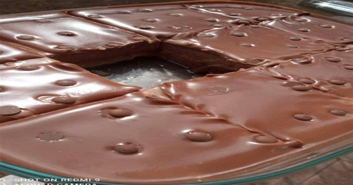Δείτε παρακάτω την εκτέλεση για το γλυκό ψυγείου με φρυγανιές, κρέμα σοκολάτας και γλάσο σοκολάτας:
