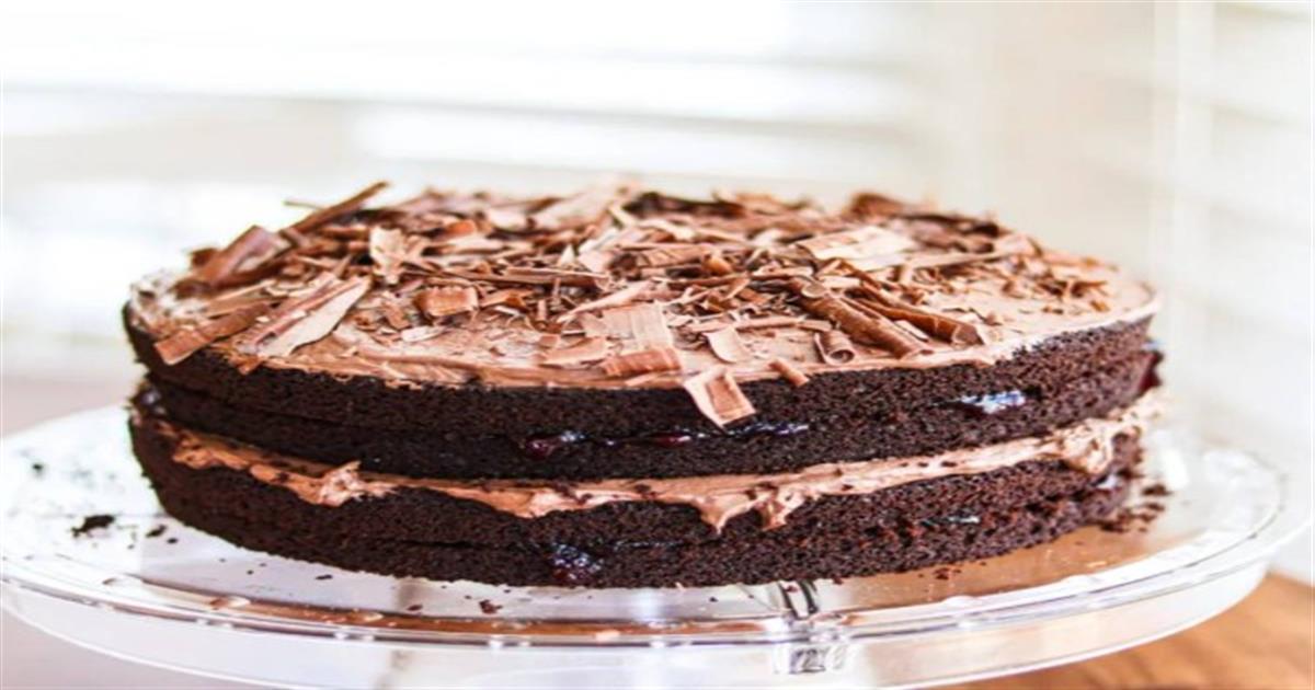- Από πάνω απλώνουμε το 1/3 από τη σοκολατένια κρέμα και ισιώνουμε την επιφάνειά της.