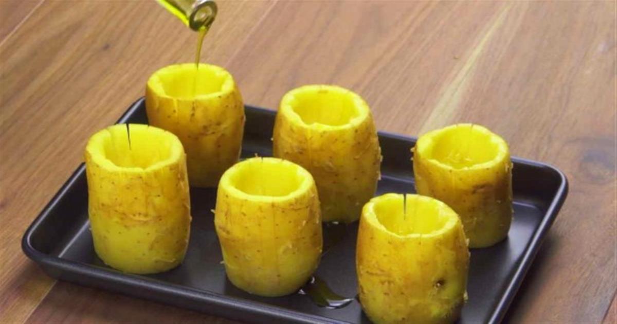 Κόβει το πάνω μέρος από 6 πατάτες και τις βάζει στο ταψί – Μόλις προσθέσει το λάδι και άλλα 3 υλικά ακόμη γίνεται… έκρηξη γεύσεων