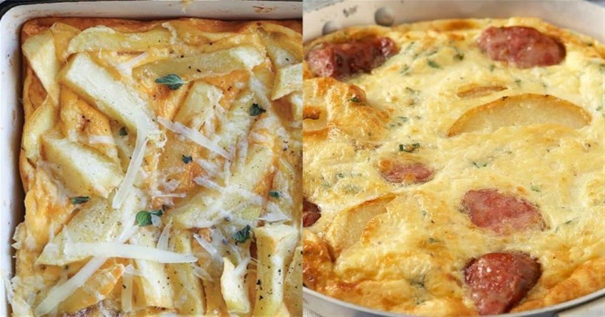 Διαφορετικά, τη μεταφέρουμε, αφού τυλίξουμε 3 – 4 φορές το χερούλι του τηγανιού με αλουμινόχαρτο, στο γκριλ του φούρνου και ψήνουμε μέχρι να ροδίσει. Τη βάζουμε σε μια πιατέλα και την κόβουμε σαν τούρτα. Εχω δοκιμάσει και έχω υιοθετήσει τη φρουτάλια ψητή στο φούρνο. Είναι πιο ελαφριά. Βάζω τις πατάτες αλατοπιπερωμένες και λαδωμένες σε ένα καλά λαδωμένο ταψί στο φούρνο και, όταν σχεδόν ψηθούν, προσθέτω τα λουκάνικα και όταν ψηθούν τραβάω μια στιγμή το ταψί και περιχύνω το μείγμα των αυγών. Την ψήνω μέχρι να στερεοποιηθεί το αυγό.