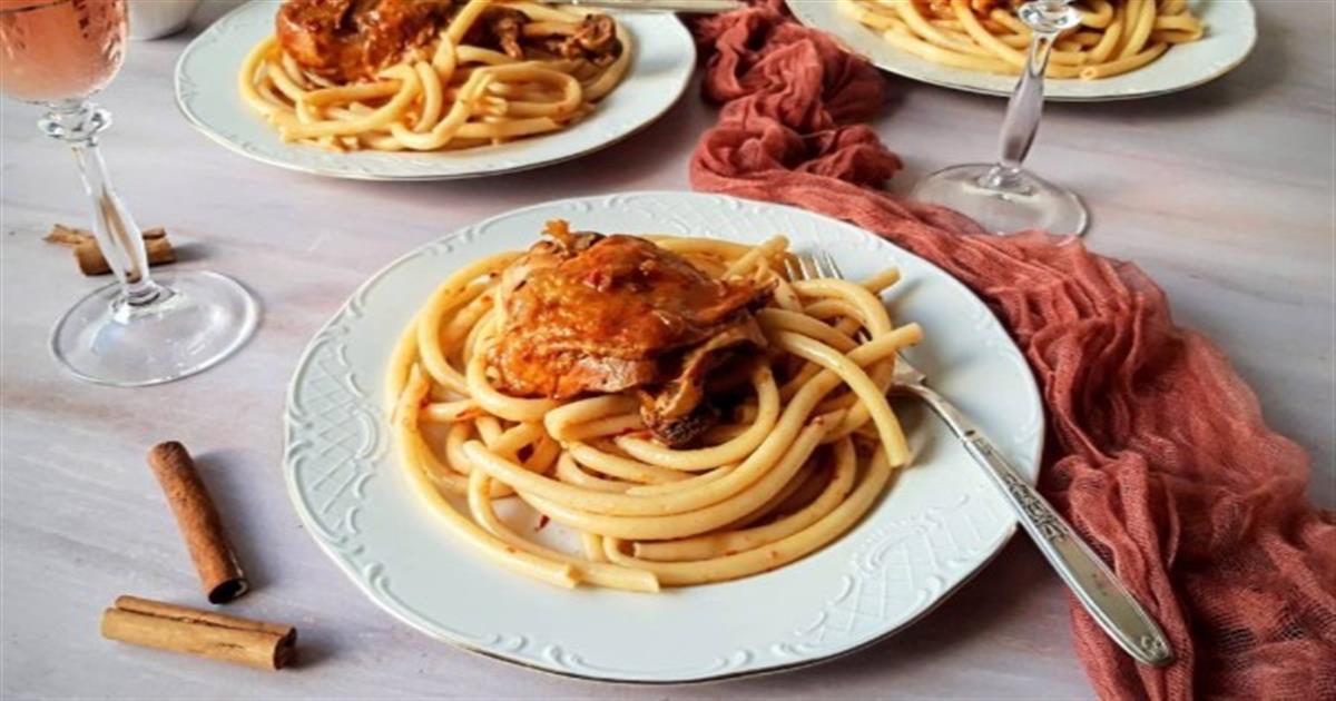 Το απόλυτο φαγητό για εσάς τους καλοφαγάδες και τους μερακλήδες! Μια εύκολη μακαρονάδα με αργομαγειρεμένο κοκκινιστό κόκορα, που μπορεί να βρίσκεται αχνιστή στο πιάτο σας!