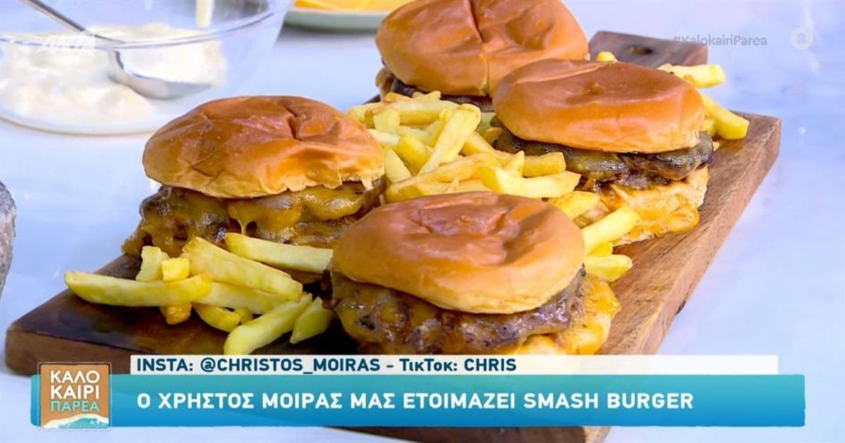 Ο Χρήστος Μοίρας ετοιμάζει ένα smash burger όπως μόνο αυτός ξέρει: μια λιτή αλλά εκρηκτική δημιουργία που παντρεύει γεύση, τεχνική και υψηλή απόλαυση. Είναι μια καλή επιλογή να αντικαταστήσετε το fast sood με σπιτικό φαγητό.