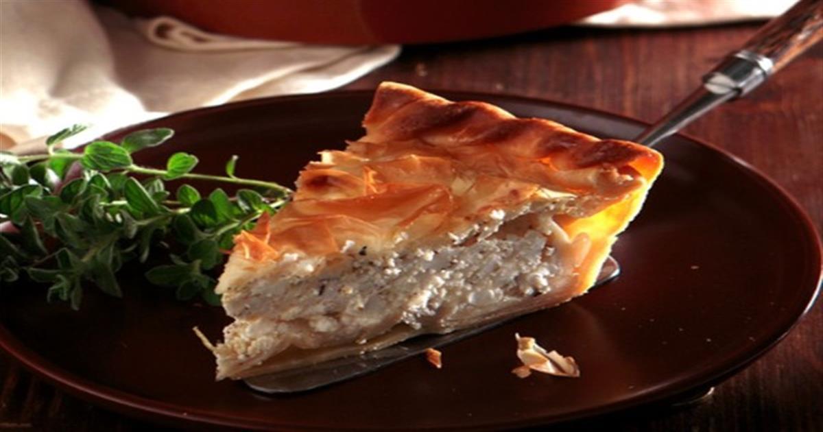 Κρεμώδης τυρόπιτα με φέτα, γιαούρτι και μαντζουράνα έτοιμη σε 15′