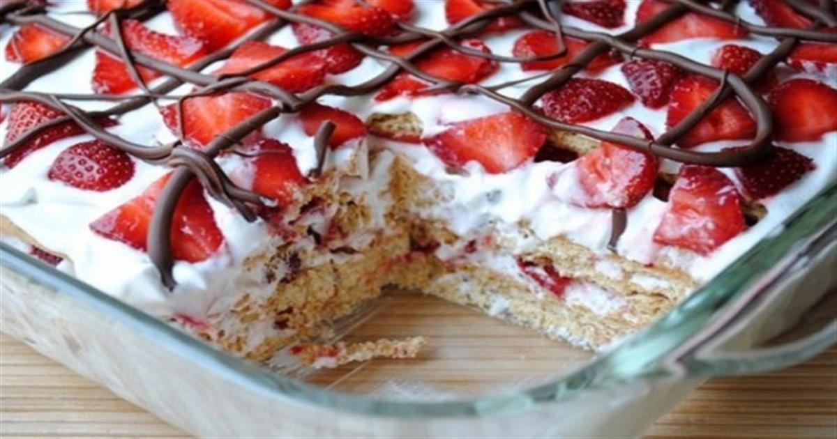 Ένα μπισκοτο – γλυκό ψυγείου με πτι μπερ και φρέσκες φράουλες. Είναι αφράτο, μυρωδάτο και δροσερό και σίγουρα θα το λατρέψετε!