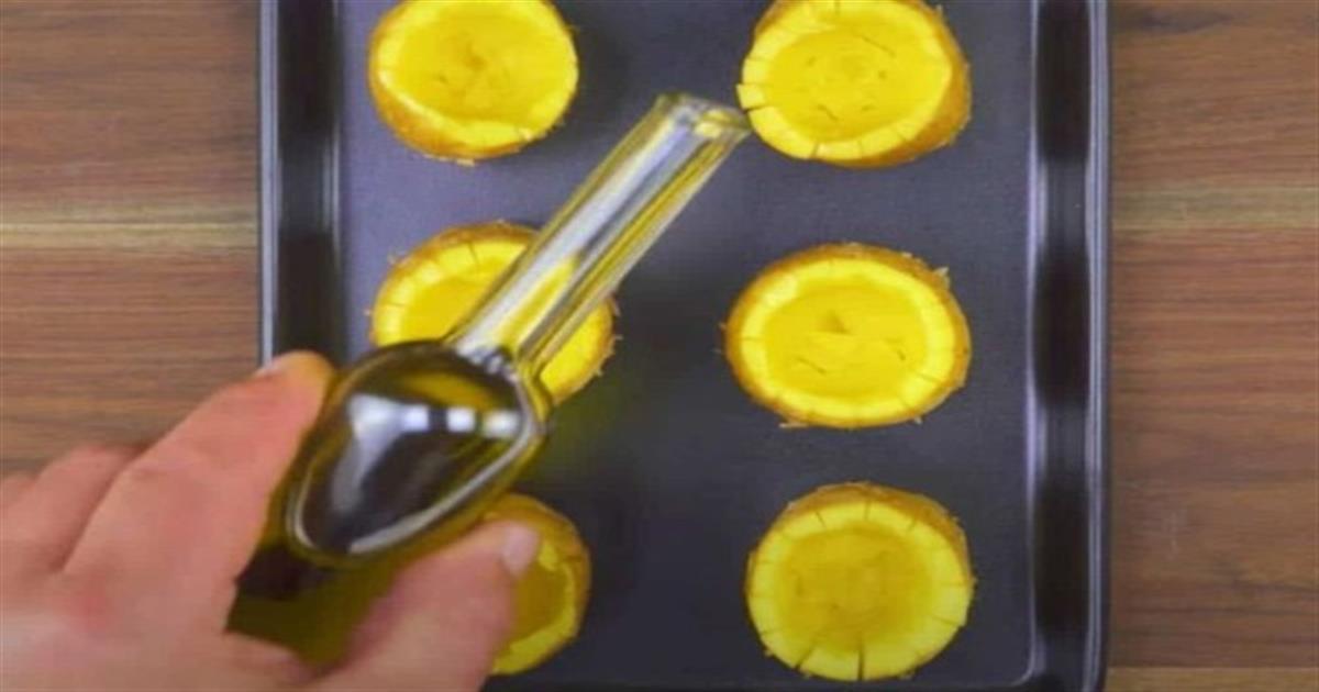 Κόβει 6 πατάτες και τις βάζει στο ταψί – Έπειτα προσθέτει ελαιόλαδο και…