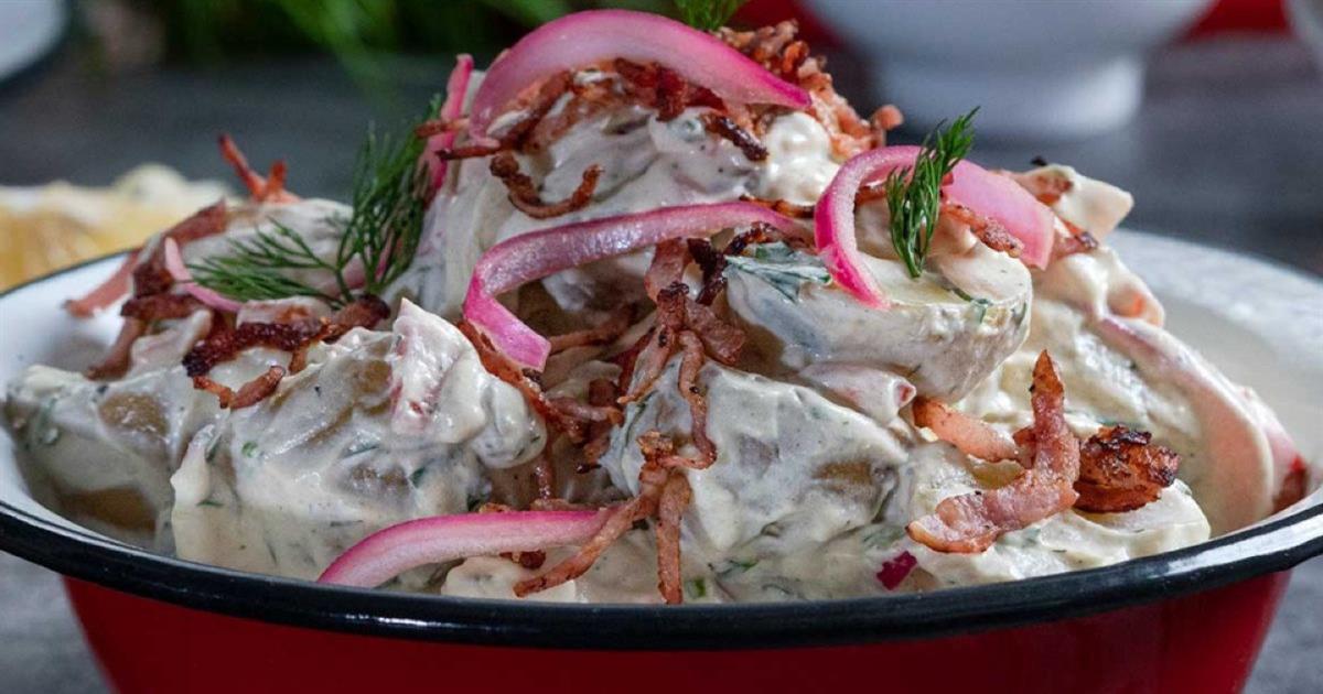 Πατατοσαλάτα με τυρί κρέμα και μπέικον – Το tip για να μην μαλακώσουν οι πατάτες και λιώσουν
