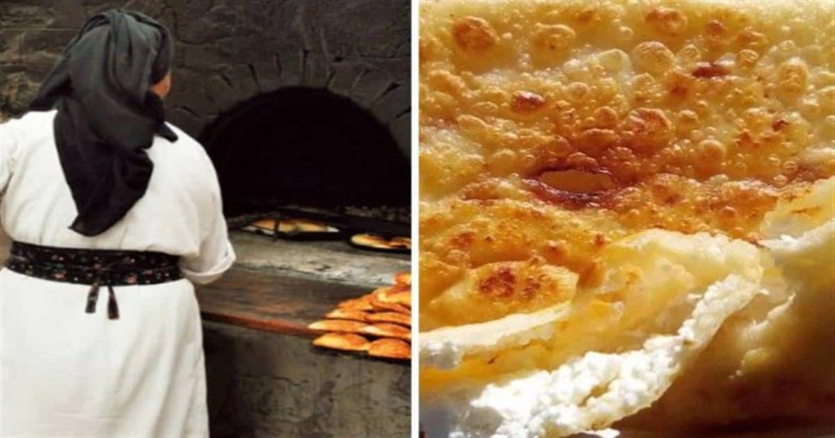 Βάζουμε στην μέση μπόλικη φέτα, το διπλώνουμε σαν τυρόπιτα και με το χέρι το ξανά ανοίγουμε όπως στην αρχή και το ξαναπλάθομαι με το χέρι για να πάει η φέτα παντού.