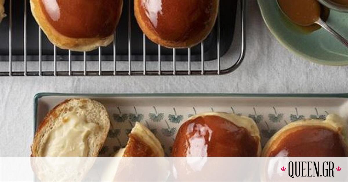Bomboloni με καραμέλα από τον Άκη Πετρετζίκη. Συνταγή για κλασικά ιταλικά γεμιστά donut με σπιτική κρέμα βανίλιας. Περίχυσέ τα με σάλτσα καραμέλας!