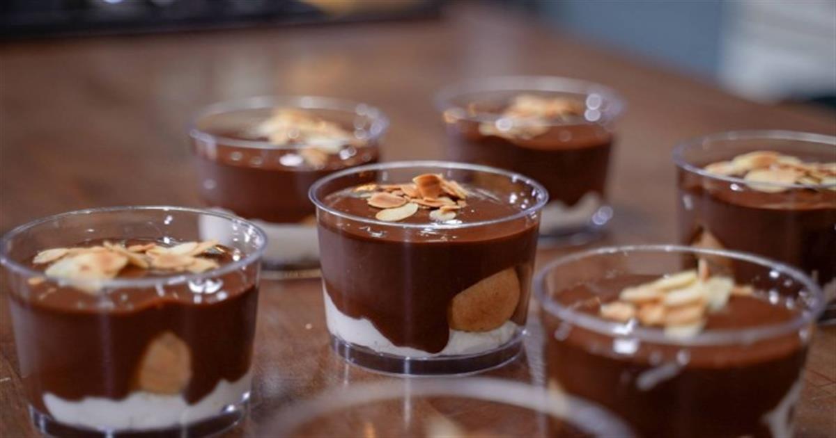 - Με ένα κορνέ ζαχαροπλαστικής βάζουμε απο πάνω την κρέμα σοκολάτας.