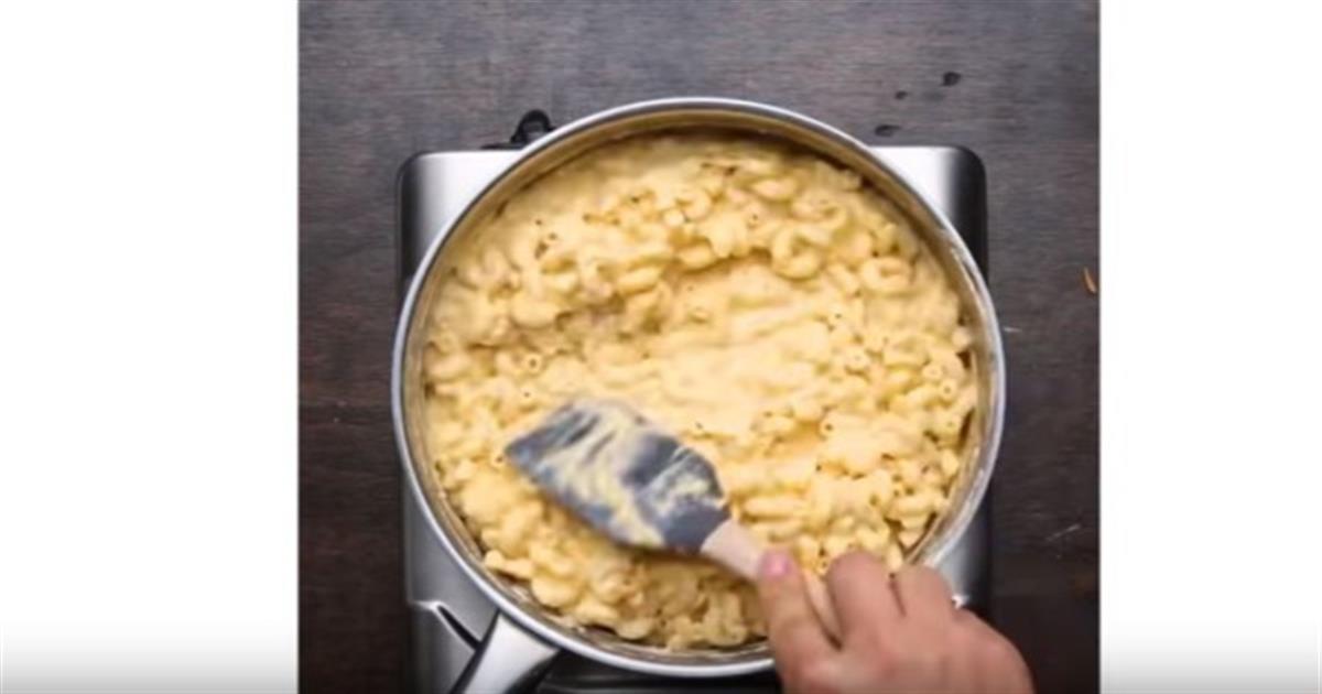 Αφού βράσετε τα μακαρόνια, τοποθετήστε τα στο τηγάνι μέσα σε ένα μείγμα από γάλα, τυρί cheddar και από άλλα υλικά που θα δείτε στο βίντεο. Ακόμα μια παράξενη συνταγή, αλλά τόσο γευστική, όπως και αυτή με τα μακαρόνια φράουλες, που θα βρείτε εδώ.