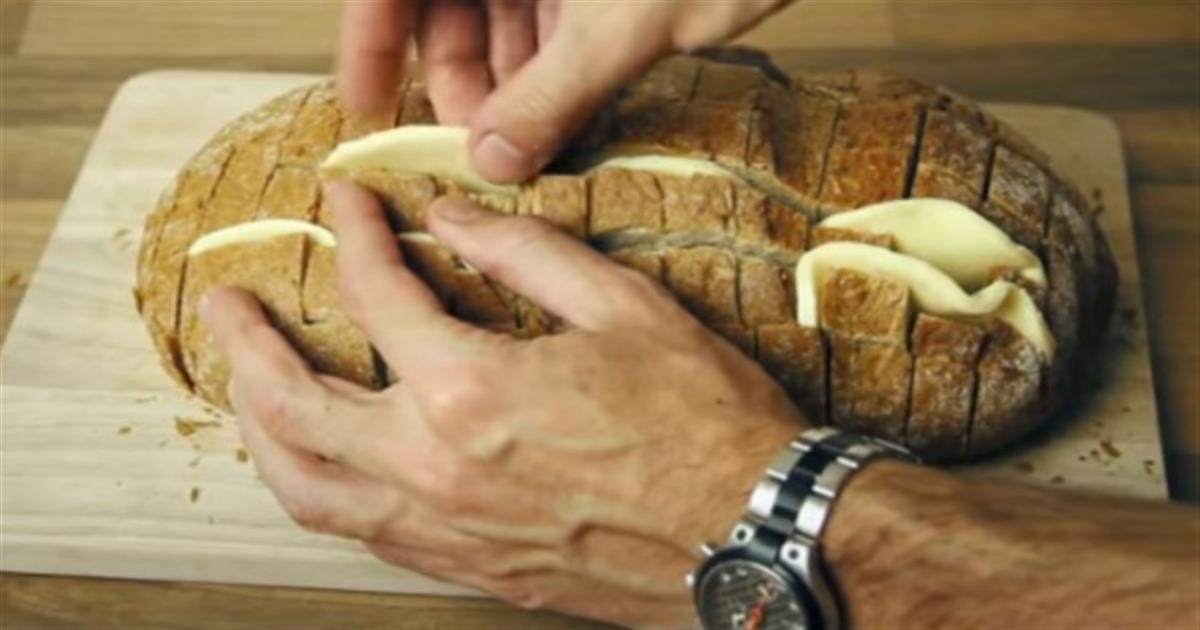 Την πιο γευστική ιδέα σκέφτηκε ένας άνδρας καθώς χάραξε ψωμί και ανάμεσα έβαλε φέτες τυριού με το αποτέλεσμα να είναι απλά πεντανόστιμο. Παρακάτω θα βρείτε τη συνταγή βήμα βήμα και ένα αναλυτικό βίντεο με κάθε λεπτομέρεια.