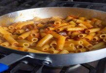 Χαμηλώνουμε την ένταση και συνεχίζουμε προσθέτοντας το αλεύρι, το τυρί, το ζαμπόν και το γιαούρτι. Τέλος προσθέτουμε αλατάκι, πιπεράκι.