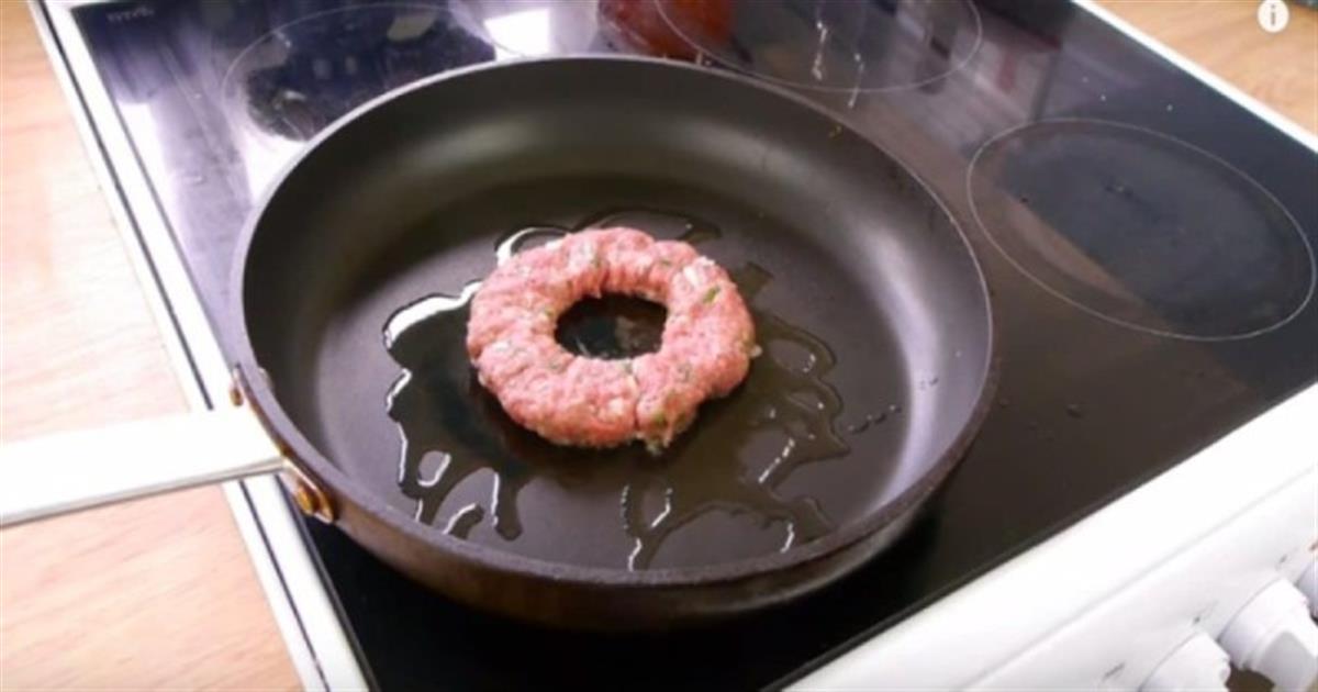 - Στην συνέχεια πάρτε ένα μικρό ποτήρι και χρησιμοποιήστε το για να ανοίξετε μια τρύπα στο κέντρο του μπιφτεκιού.