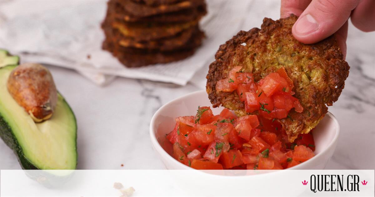 2 ώριμα αβοκάντο80 γρ. παρμεζάνα, τριμμένη1 κ.γ. χυμό lime½ κ.γ. σκόρδο, σε σκόνηΑλάτιΠιπέριΓια το σερβίρισμα:1 ντομάτα, ψιλοκομμένη1 κ.σ. χυμό λεμονιού1 κ.σ. φρέσκο μαϊντανό, ψιλοκομμένοΑλάτιΠιπέριΕλ…