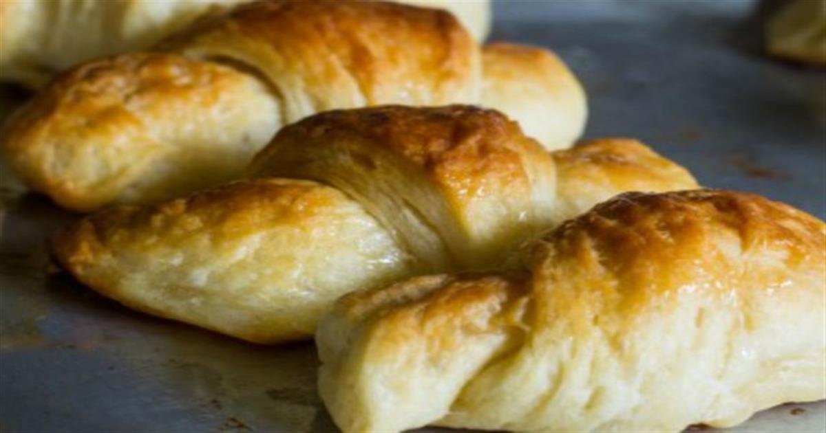 Βουτυρώνουμε τα κρουασάν και τα ψήνουμε πάνω σε αντικολλητικό στους 190 για μισή ώρα