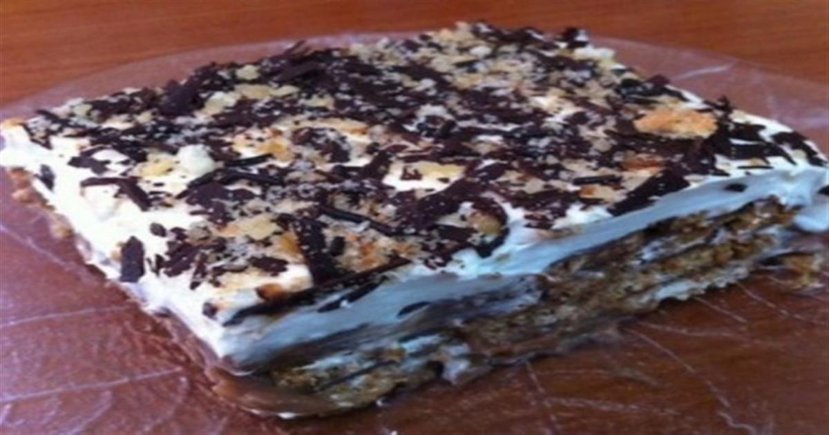Μια πολύ εύκολη συνταγή για αρχάριους, πολύ γρήγορη στη παρασκευή της για ένα υπέροχο παγωμένο γλυκό ψυγείου με ζαχαρούχο γάλα και κομματάκια σοκολάτας, με 4 μόνο υλικά χωρίς ψήσιμο.300 γρ. μπισκότα τ…