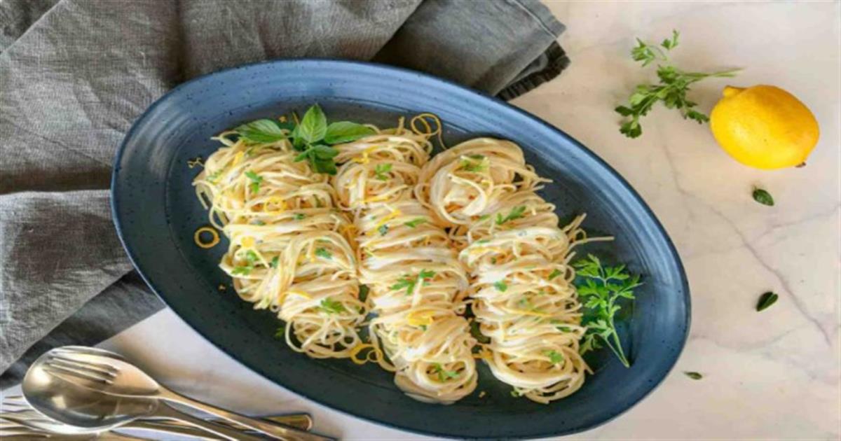 - Στραγγίζετε τα ζυμαρικά και κρατάτε λίγο από το νερό τους. Ξαναρίχνετε τα στραγγισμένα ζυμαρικά στην κατσαρόλα, προσθέτετε τη σάλτσα λεμονιού και ανακατεύετε καλά πάνω στη φωτιά.