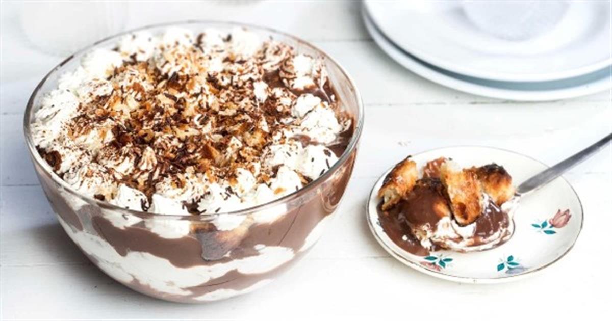 - Βάζουμε λίγη κρέμα σοκολάτας σε βαθύ γυάλινο μπολ.