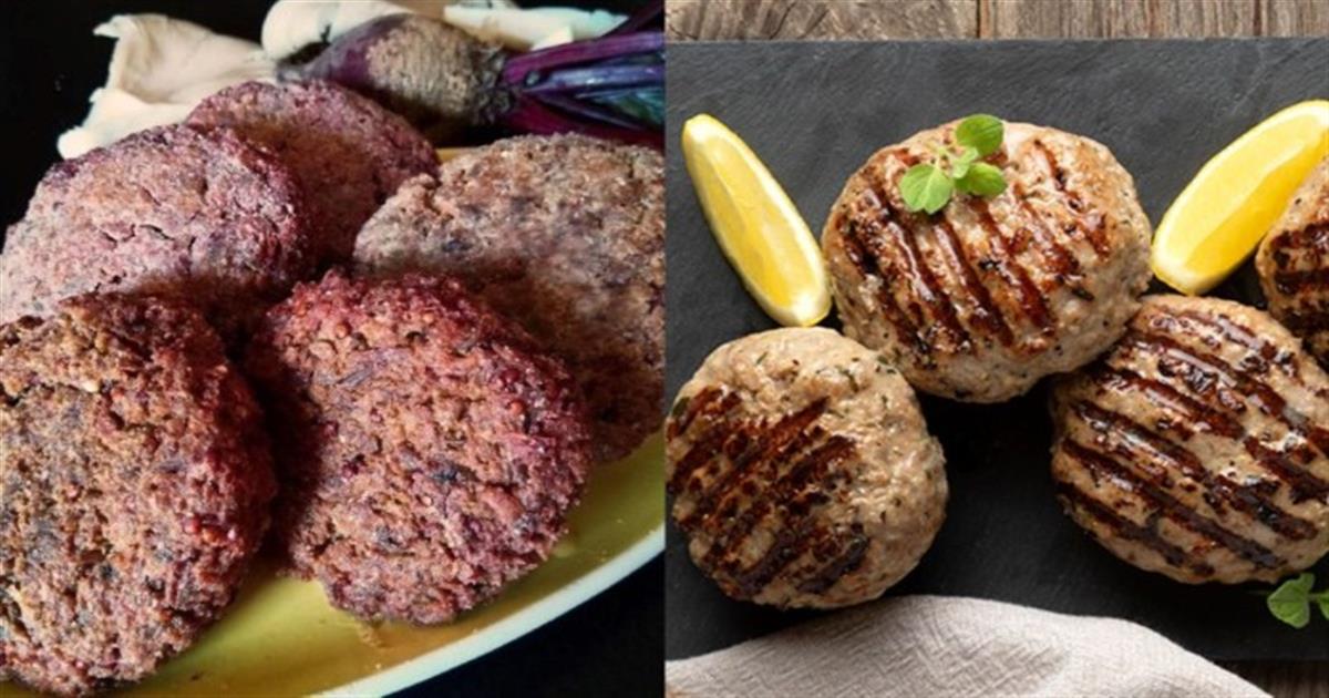 - Πλάθουμε 8 μπιφτέκια και τα αραδιάζουμε πάνω στα μανιτάρια.