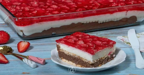 Είναι εύκολο και οικονομικό γλυκό ψυγείου, ελαφρύ, δεν έχει ζάχαρη και έχει γεύση σοκολάτα, βανίλια και φράουλα. Να τονίσουμε εδώ, πως διατηρείται στο ψυγείο για 4 ημέρες και θα σας καταπλήξει η υφή του.