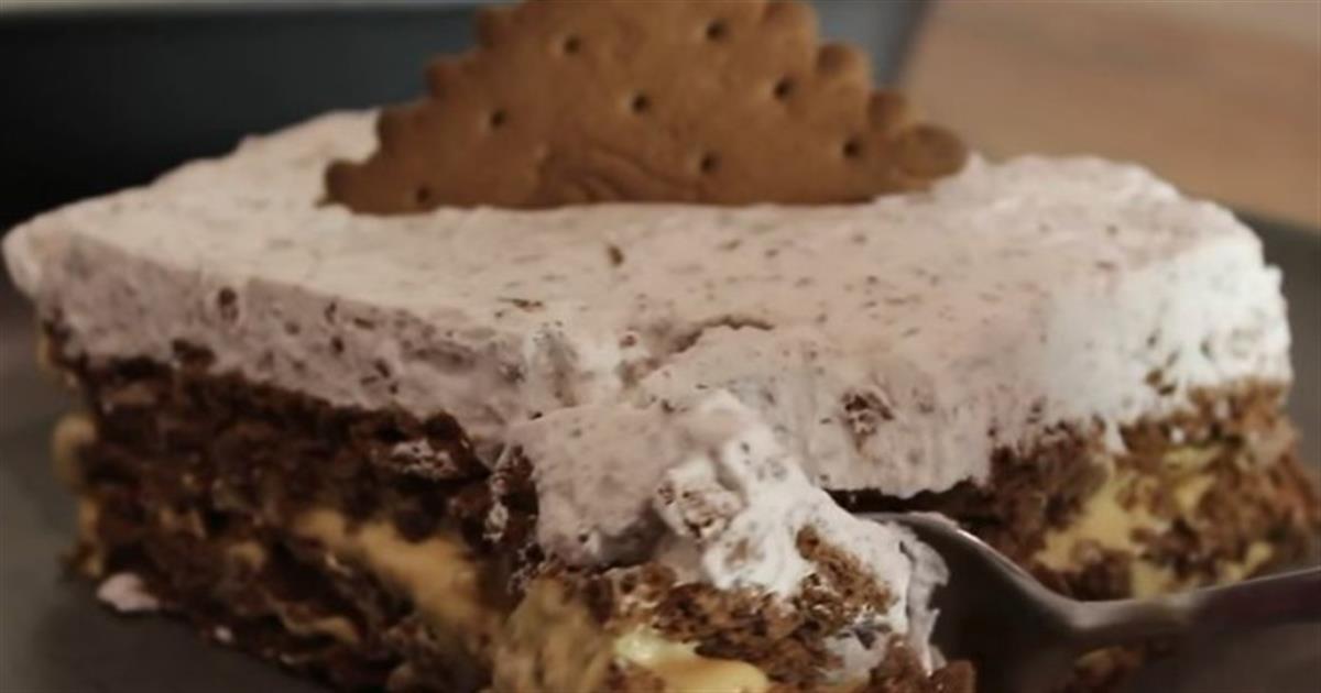 Γρήγορο γλυκό ψυγείου με cookies σοκολάτας και γάλα