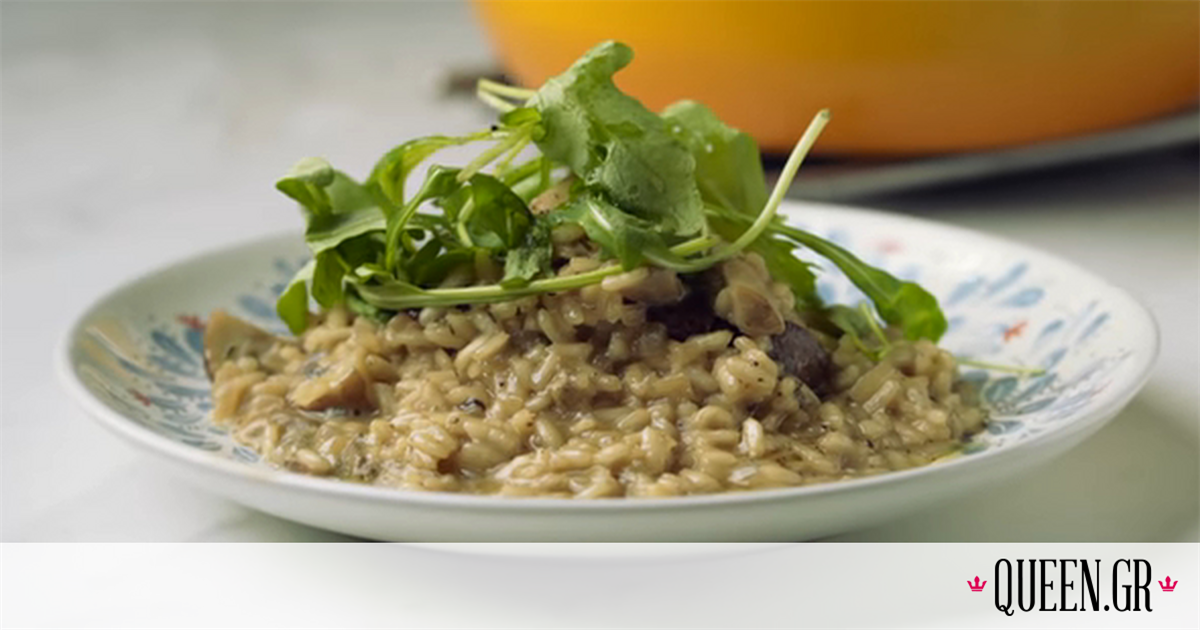130 γρ. ρύζι arborio870 ml. ζωμό λαχανικών100 γρ. μανιτάρια κρέμινι, κομμένα σε τέσσερα1 μικρό κρεμμύδι , ψιλοκομμένο1 σκ. σκόρδο, ψιλοκομμένη80 ml λευκό κρασί50 ml ελαιόλαδο, αρωματισμένο25 γρ. βούτυ…