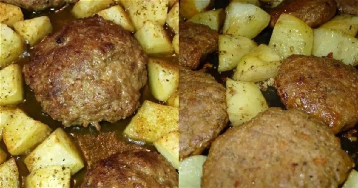 Η συνταγή για μαμαδίστικα μπιφτέκια με πατάτες στο φούρνο σαν λουκούμι