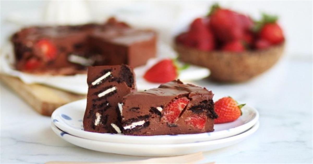 Τι πιο νόστιμο και δροσερό από ένα γλυκό ψυγείου με σοκολάτα και γέμιση ολόκληρο φρούτο φράουλα; Ιδανικό για μετά το γεύμα. Σερβίρετε με παγωτό για έξτρα απόλαυση!