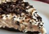 – Μετά Ρίχνουμε την σαντιγί, πασπαλίζουμε με τρίμματα κουβερτουρας και το διατηρούμε στο ψυγείο.