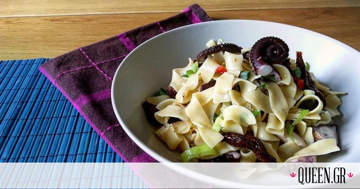 ΥΛΙΚΑ250γρ. Μακαρόνια χυλοπίτες (βρασμένες)120γρ. Χταπόδι (βρασμένο)20γρ. Πιπεριά πράσινη20γρ. Πιπεριά κόκκινη20γρ. Ελαιόλαδο20γρ Λιαστή ντομάτα (σε λωρίδες)10γρ. Κρεμμύδι φρέσκο (σε ροδέλες)10γρ. Κάπ…