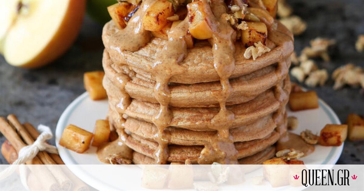 Κι επειδή τα μελομακάρονα θα σου δώσουν πολλές πολλές θερμίδες, τι θα έλεγες για την εναλλακτική της ειδικού για pancakes χωρίς την μπανάνα που έχεις βαρεθεί αλλά με μήλο και κανέλα.