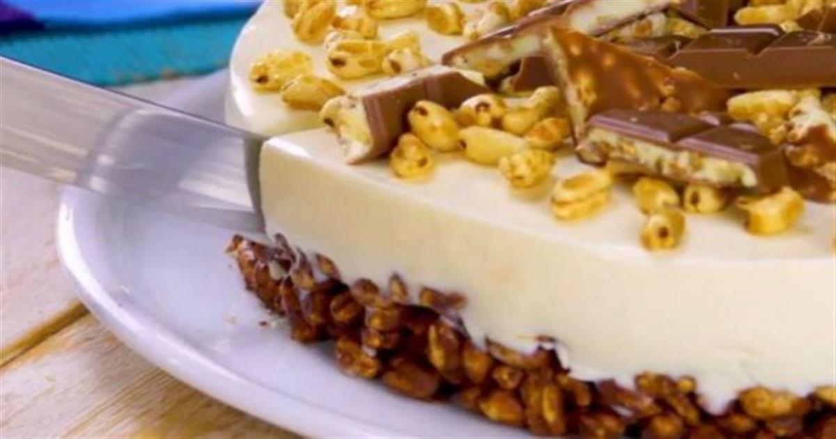 - Ξεκινάτε λιώνοντας την κουβερτούρα σε μπεν μαρί. Προσέχετε το βραστό νερό να μην ακουμπάει την βάση του μπολ. Ρίχνετε τα δημητριακά στο μπολ με τη λιωμένη σοκολάτα και απλώνετε το μείγμα στη βάση μιας φόρμας με αποσπώμενα τοιχώματα. Αφήνετε τη βάση να παγώσει ώσπου να σκληρύνει.