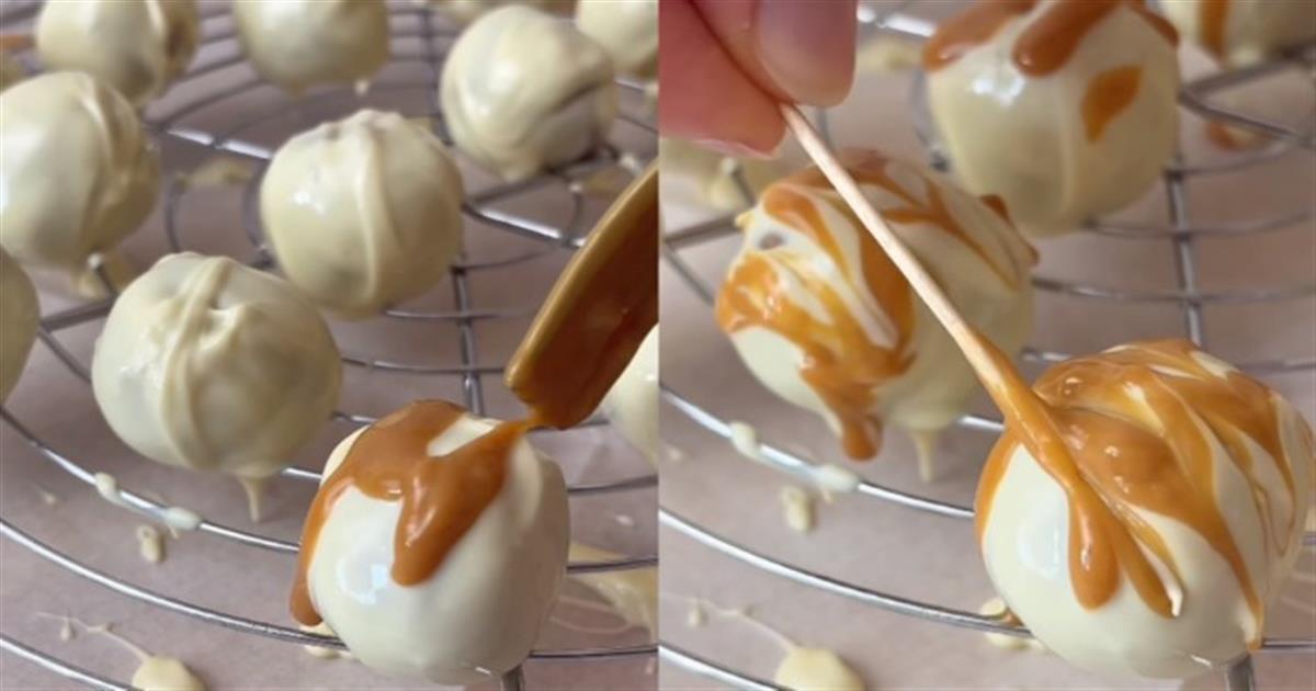 - Βουτάς μία μία στη σοκολάτα και διακοσμείς όπως σου αρέσει (εγώ έβαλα καραμελωμένο ζαχαρούχο γάλα).