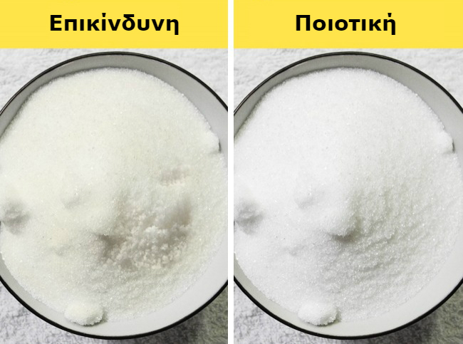 Η ζάχαρη είναι εύκολο να απορροφήσει την υγρασία και αν δεν αποθηκευτεί σωστά, τότε μπορεί εύκολα να πάρει υγρασία. Προκειμένου να δείτε αν η ζάχαρη έχει πάρει υγρασία, κουνήστε την συσκευασία. Αν κουνηθεί εύκολα, σημαίνει ότι δε κολλάει μεταξύ της και δεν σχηματίζει σβώλους.