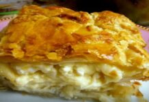 Το ανακατεύουμε μέχρι να λιώσει και ρίχνουμε το αλεύρι ανακατεύοντας συνεχώς.