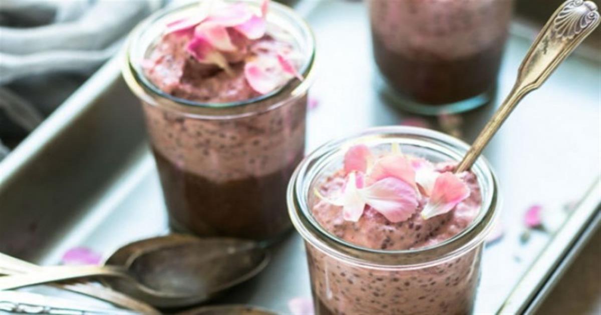 2. Για να φτιάξετε τη στρώση σοκολάτας, τοποθετήστε σε ένα μπολ 1 φλιτζάνι κρέμα καρύδας, 2 κουταλιές της σούπας κακάο, 2 κουταλιές στρογγυλό σιρόπι και 1/2 κουταλάκι του γλυκού εκχύλισμα βανίλιας. Ανακατέψτε μαζί μέχρι να γίνουν ένα. Ανακατέψτε σε 3 κουταλιές σπόρους chia και συνδυάστε όλα τα συστατικά. Ρίξτε στη βάση των βάζων που θα χρησιμοποιήσετε. Τοποθετήστε το στο ψυγείο για 3 ώρες.