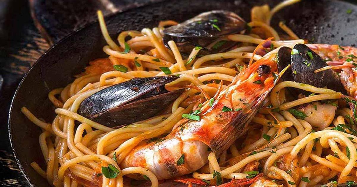 - Ανακατεύουμε και βράζουμε σε δυνατή φωτιά για 2 με 3 λεπτά να πιούν τα σπαγγέτι τα υγρά των θαλασσινών και της σάλτσας.