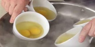 Βάζει 8 αυγά σε 4 κούπες καφέ και τα βουτάει σε...