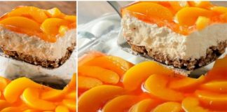 Γλυκό ψυγείου με μπισκοτένια βάση – Επικάλυψη με ροδάκινα και ζελέ