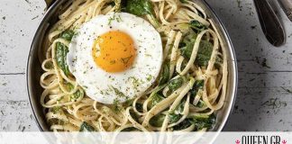 Λιγκουίνι με σπανάκι και τηγανητά αβγά από τον Άκη Πετρετζίκη